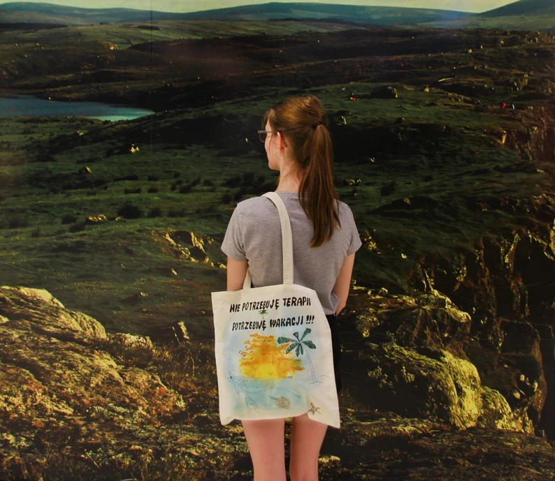 Bawełniana, ręcznie malowana eko torba na zakupy. Naturalna siatka na zeszyty lub na szkicownik. Dostępne po 1 szt. z każdego wzoru. Zdjęcia opcji do wyboru poniżej.