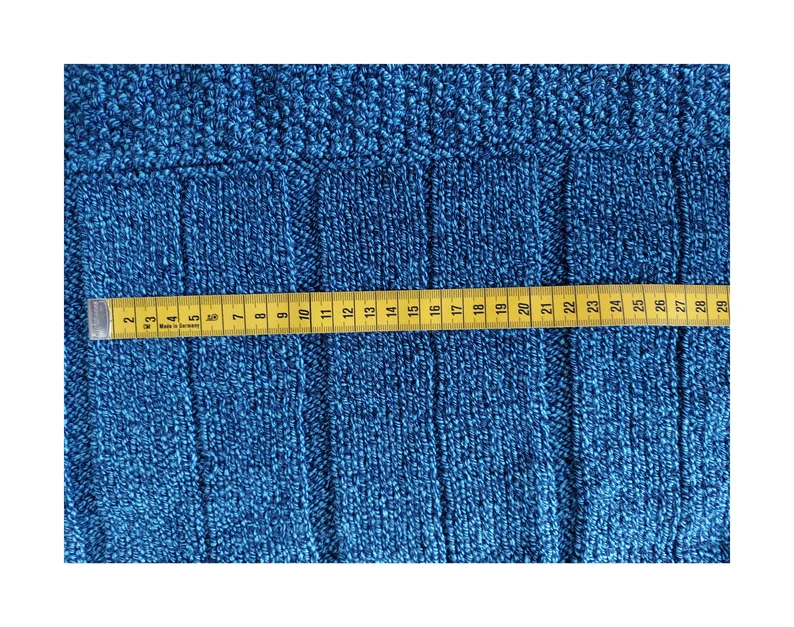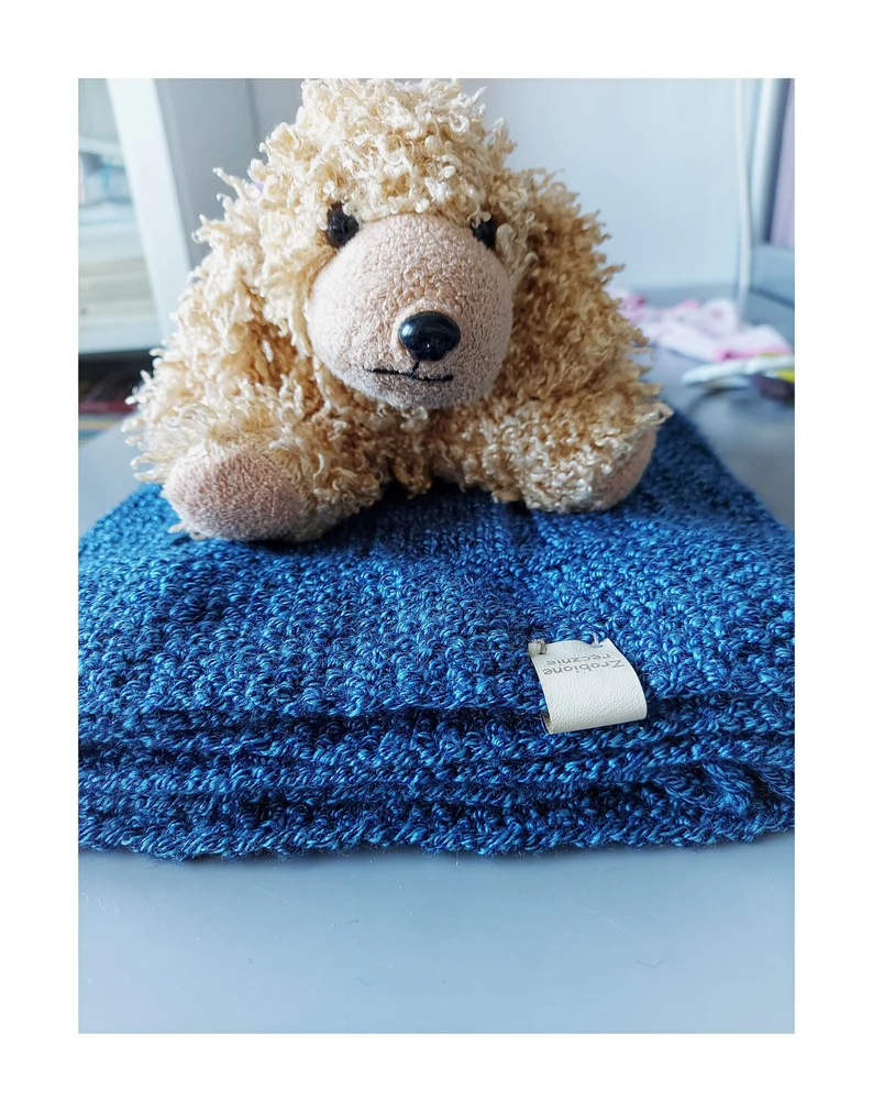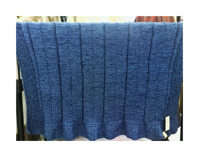 Kocyk jest zrobiony drobnym ściegiem na drutach. Wykonany jest z przyjemnej w dotyku włóczki akrylowej. Jest bardzo delikatny i sprężysty. podane wymiary (84x84cm) mierzone są bez rozciągania, ale dzięki zastosowanym ściegom są w rzeczywistości większe.