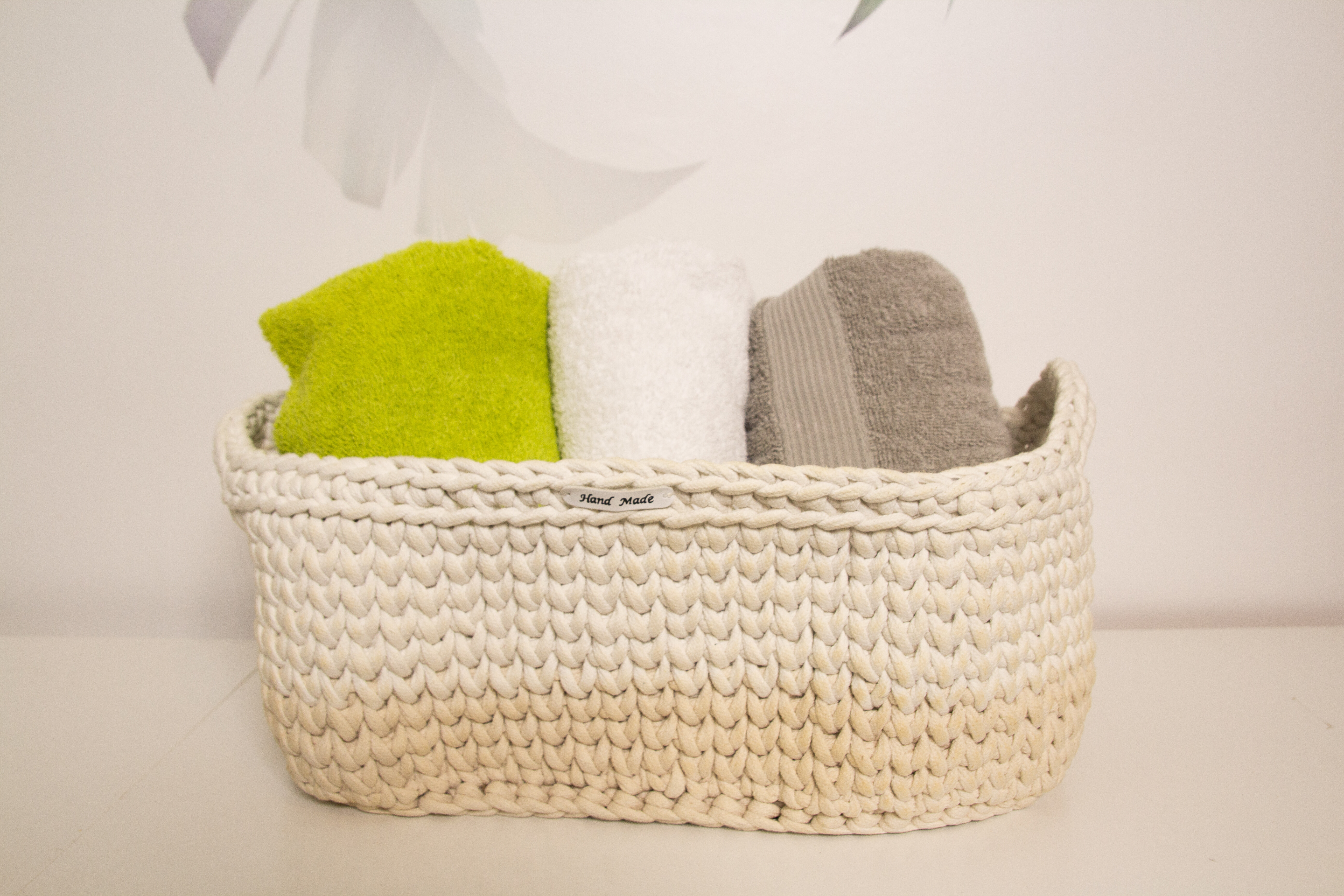 Kosz z bawełnianego sznurka zrobiony na szydełku. Dostępna 1 szt. Więcej zdjęć poniżej.