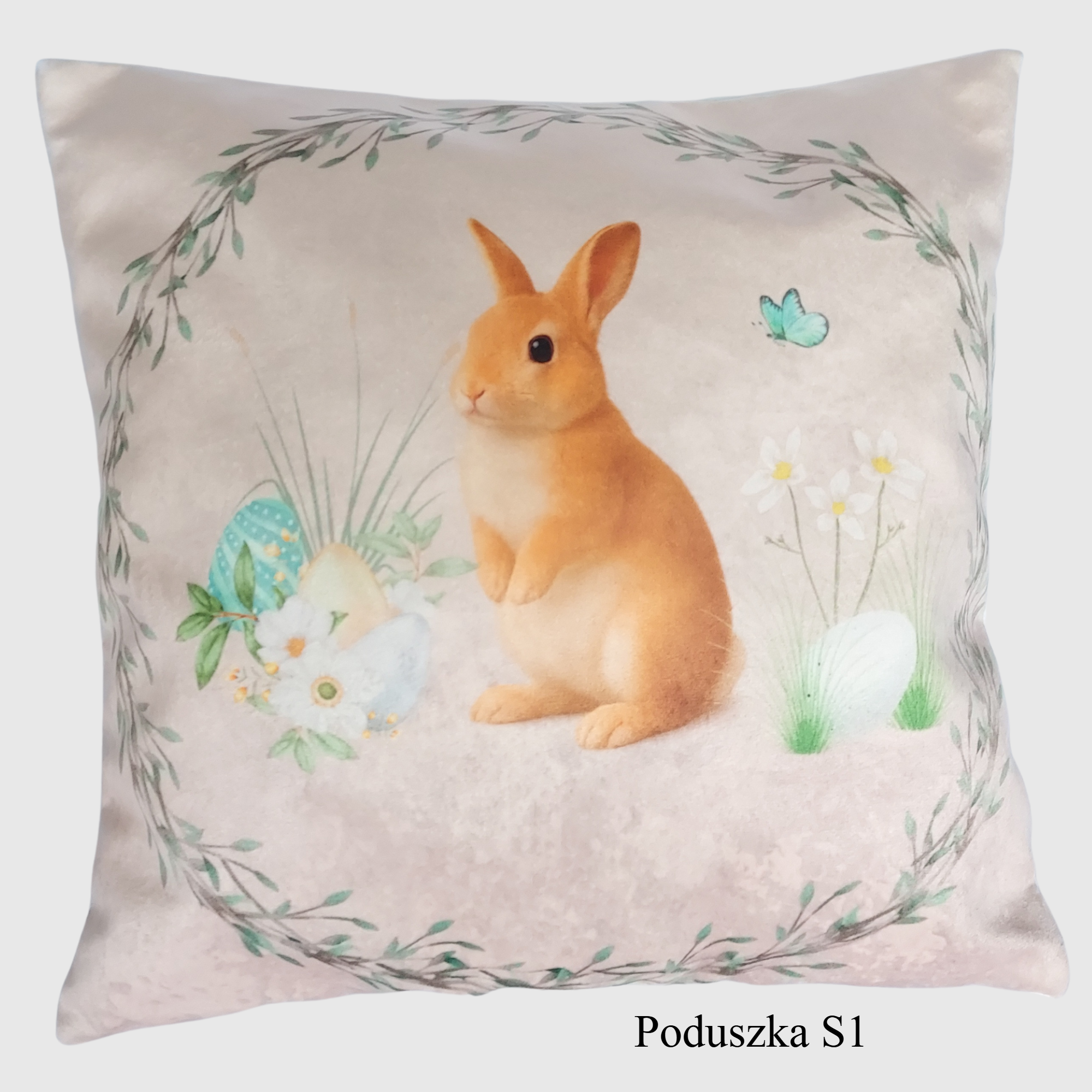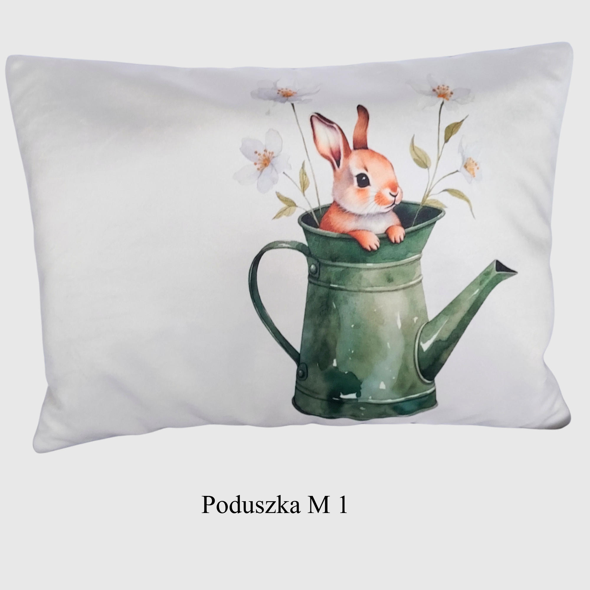 Poduszka z zającem to idealny element wiosennej dekoracji.