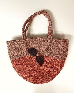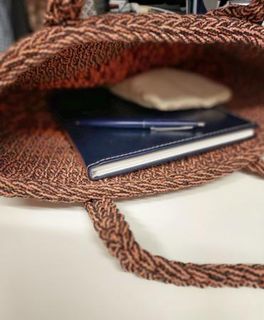 Torebka wykonana jest na szydełku z bawełnianego sznurka z poliestrowym rdzeniem. Może służyć jako torba plażowa, pleciona siatka na zakupy, torba na szkicownik i torba na książki dla studenta. Torba ekologiczna na wiosnę i lato. Wymiary: wysokość po środku 32 cm, szerokość - górna krawędź 42 cm, długość rączek 52-55 cm. Torbę można prać w temperaturze 30 stopni Celsjusza. Aby zabezpieczyć sznurek, można go zaimpregnować delikatnym krochmaleniem.